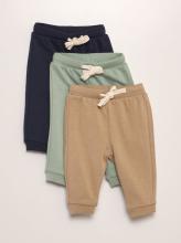 Confort et praticité pour tous les jours ! - Lot de 3 joggings unis - En molleton non-gratté (french-terry) - Taille élastiquée - 2 cordons de serrage - Finitions bords-côtes