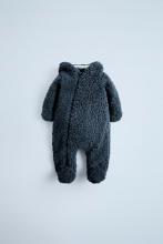 Combinaison effet mouton avec capuche et manches longues. Fermeture zippée devant. Doublure intérieure en tissu polaire.