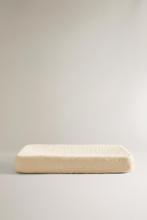 Housse de matelas à langer pour bébé en coton éponge avec un design uni. Elle est présentée dans une housse qui se ferme avec un lien.