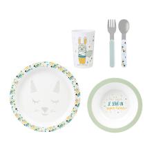 Ce set de repas enfant lapin sera idéal pour les repas de bébéCe set est composé de 4 pièces adaptés aux petits, deux assiettes, un verre, et des couvertsPensez aussi à offrir !Ce set est parfait cadeau de naissance