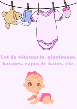 Lot de vêtements, gigoteuses,…