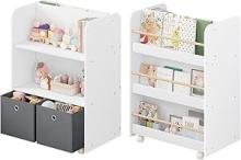 Étagère mobile 2 en 1 pour enfants - Étagère à jouets avec boîtes - Espace de rangement double face - Étagère polyvalente sur roulettes - Pour chambre d'enfant