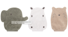 Découvrez notre set de 3 gants de toilette animaux en coton doux