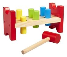 Votre petit frappe sur les 6 bâtonnets colorés de ce jeu d'adresse en bois avec le marteau, elles tombent et il n'y a plus qu'à retourner le banc à marteler pour recommencer. Que c'est amusant !