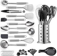 Reanea Ensemble d'ustensiles de cuisine de 39 pièces en acier inoxydable, cuillère, spatule et porte-ustensiles, robustes, compatibles lave-vaisselle : Amazon.com.be: Cuisine et maison