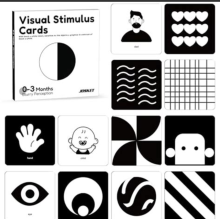 Cartes spécifiques en noir et blanc pour travailler l'acuité visuelle des bébés de 0-4moid qui ne voient pas encore en couleur. Elles aident à stimuler la vision et au développement du cerveau de bébé.