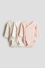 Bodies à manches longues en jersey de coton très doux. Modèle croisé devant avec fermeture pressionnée sur les côtés et à l'entrejambe pour faciliter le change. Coutures froncées autour des jambes pour plus de confort et un meilleur ajustement au niveau de la couche.