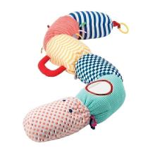 Cette grande chenille d'activités est composée de 6 boudins, tous de couleurs et de matières différentes. La chenille est douce, moelleuse, ses couleurs sont vives et ses motifs amusants. Chaque boudin propose au bébé une activité d'éveil différente : cordons, étiquettes, miroir, papier bruissant, anneau vibreur, anse à attraper.