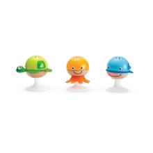 Grâce à leurs ventouses, ces 3 hochets aux couleurs vives se collent, sur la tablette d'une chaise haute où sur toute surface plane ! En manipulant et en découvrant les différents sons de la pieuvre orange, de la tortue verte et de la baleine bleue, votre bébé éveille et développe sa sensibilité musicale.