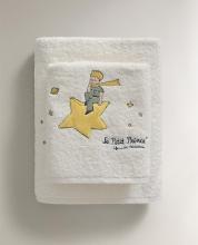 Serviette de bain en coton éponge pour enfant ornée de motifs brodés inspirés du livre Le Petit Prince.