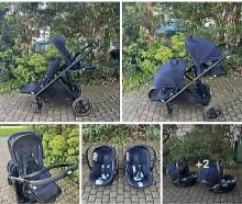 Participation pour notre poussette double et les cosys, achetés en occasion.