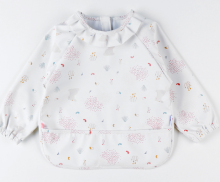 Un joli tablier à manches pour bébé artiste (6M-2 ans) écru en toile cirée déperlante à imprimé "Lina & Joy"! Baby pourra s’amuser et jouer tout en ne salissant pas ses vêtements.