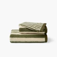 Optez pour une capsule de linge de bain où, d’un côté, de larges rayures s’opposent à des rayures plus fines de l’autre, créant un joli contraste. Une broderie dinosaure apporte une touche de fantaisie et d’affection.