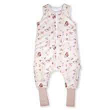 Całoroczny lekki śpiworek z nogawkami do spania. Zaprojektowany z myślą o bezpiecznym śnie dla dzieci zaczynających raczkować i chodzących. Do spania przy temperaturze pomieszczenia 20-24 °C. Wykonany z dwóch warstw dzianiny niezwykle miękkiej i przyjemnej dla skóry dziecka (materiał z którego szyje się body i pajacyki) z puszystym antyalergicznym wypełnieniem silikonowym. Dzianina z której uszyty jest śpiworek to 100% bawełna jakości Premium.