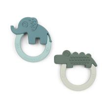 Lot de deux anneaux de dentition en silicone souple représentant les amis des Deer, Croco et Elphee. Les anneaux de dentition sont faciles à tenir pour les enfants et les différentes textures aident à stimuler et à apaiser les démangeaisons des gencives.Ces mignons jouets de dentition sont fabriqués en silicone aliment