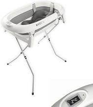 Baignoire Pliable Bébé avec Support en Acier,Thermomètre Intégré, Coussin Ergonomique et tuyau de Vidange - Bébé Dauphin - Compacte et Transportable, 0-3 Ans, Gris : Amazon.com.be: Bébé et Puériculture