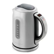 Bouilloire en inox satiné à la ligne raffinée, équipée d'un thermostat variable de 50 à 100° par palier de 5°C.