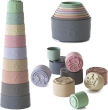 Yitical Tour empilable pour bébé avec 9 gobelets, jouet pour bébé à partir de 3 à 6, 9, 12 mois, jouet éducatif, gobelet empilable, jouet de motricité, jouet de dentition en silicone, cadeau pour : Amazon.com.be: Jouets