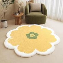 AIMECO Tapis rond pour enfant - 80 cm - Doux et douillet - Pour salon, chambre à coucher, chambre d'enfant - Fin - Facile d'entretien - Motif fleur jaune : Amazon.fr: Cuisine et Maison