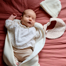 Trousseau NAISSANCE ++ (emmailloteuse + bonnet + bavoir)