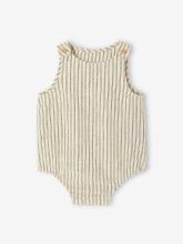 On adore la toile coton/lin de cette barboteuse toute mignonne avec sa ligne ample et son imprimé rayé !