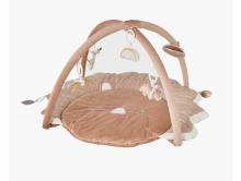 Le tapis d'éveil Popsie en veloudoux rose est parfaitement adapté pour stimuler la motricité, le développement cognitif et les sens de bébé grâce aux différentes matières et sons qui le constituent (miroir, pouet, papier froissé, clochette et jouet de dentition). En forme de tricératops, ce tapis Noukie's est doté d’un bord rembourré qui permettra à votre enfant de jouer en toute sécurité peu importe sa position 🧶