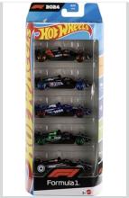 Pack de 5 voitures de F1 de la marque Hotwheels. Se trouve dans les magasins de jouets (13 euros) ou sur Amazon (9 euros)