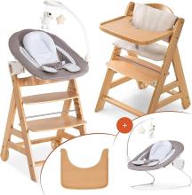 hauck Alpha Move Newborn Deluxe Wooden Highchair Set - Includes Newborn Accessory, Seat Cushion and Feeding Shelf - Can Be Used From Birth, Adjustable Height - Natural Sand : Amazon.fr: Baby Products