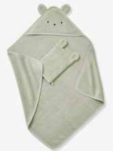 Cape de bain + gant de toilette BIO* amande - Vertbaudet