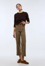 Pantalon large taille haute imprimé léopard contenant du coton BRUN CLAIR pour femme MONOPRIX | Taille 36