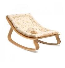 Fauteuil scandinave en tissu effet velours texturé beige et bois clair AVERY