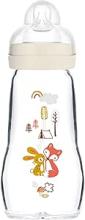 MAM Feel Good Biberon en verre (260 ml), bouteille de lait avec large ouverture, gourde solide pour bébé avec tétine taille 1, dès la naissance, lapin/renard