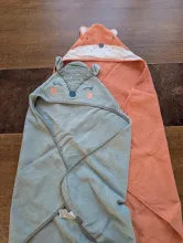 Cette jolie cape de bain toute douce avec capuche à oreilles réchauffera bébé à la sortie de son bain. On adore !