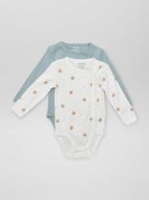 Un lot de bodies pratique pour préparer la venue de bébé ! - Lot de 3 bodies fantaisie - Forme croisée - Manches longues - Ouverture entrejambe + poitrine à pressions - 1 motif all-over - 1 imprimé placé - 1 rayé all-over