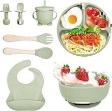 Bizcasa Coffret Repas Bebe 8 pièces, Vaisselle Antiderapant pour Bébé Set Silicone avec Ventouse Assiette Bol Fourche Cuillère Bavoir et Tasse, Assiette Enfant Set, Sans BPA (Vert 1) : Amazon.fr: Bébé et Puériculture