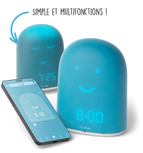 Plus qu’un réveil ou un babyphone : REMI veille sur le sommeil avec veilleuse, suivi et musiques. Des nuits calmes et des parents rassurés.