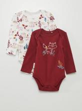 Des imprimés trop mignons pour ces 2 bodies ! - Lot de 2 bodies en jersey - Col rond / Col US - Manches longues - Ouverture par boutons pressions à l'entrejambe - 1 imprimé all-over - 1 imprimé devant