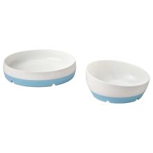BÖRJA assiette et bol, blanc/bleu Grâce à cette assiette et ce bol, votre enfant arrive plus facilement à mettre la nourriture dans sa cuillère. Les bords hauts sont incurvés vers l'intérieur et le fond est large ; la surface sur l'envers les maintient bien en place.