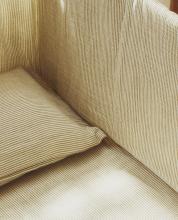 Tour de lit bébé pour lit bébé confectionné en coton avec tissu type gaze et motif à rayures.Il se fixe au lit bébé avec des rubans.