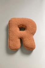 Coussin pour enfant en forme de lettre R avec effet peau d’agneau.