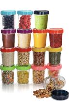 Belle Vous Lot de 16 Pot en Verre avec Couvercle en Plastique – 350ml Petit Pot Verre Rond Transparent Réutilisable et Hermétique - Sans BPA/Plomb - Lave-Vaisselle et Micro-Ondes - Pour Collations