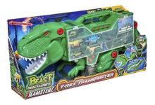 Le passé et le présent entrent en collision avec le T-rex Transporter Teamsterz Beast Machines. Emporte cette valise en forme de dino partout avec toi. Elle peut contenir 20 voitures. Avec sons et lumières, des mâchoires qui s'ouvrent, etc.
