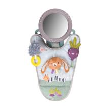 Ce panneau de voiture comprend des jouets suspendus doux et colorés avec des hochets et sons pour développer la motricité : betterave bruissante, lapin carillon et hérisso