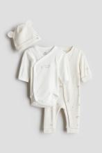 Coffret-cadeau 3 pièces en jersey de coton - Encolure ronde - Manches longues - Crème/motif - ENFANT | H&M BE