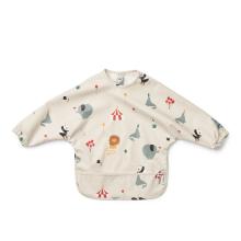Bavoir avec manches léger pour les petits gourmands. Les poignets élastiques assurent un ajustement parfait, et la poche avant attrape les aliments renversés. Conçu en polyester recyclé durable, le bavoir avec manches est facile à nettoyer et peut être plié pour un rangement compact à la maison ou en déplacement.Bavoir