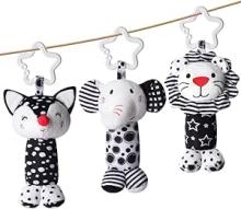 Aolso Kinderwagen Spielzeug, 3Pcs hängendes Rasselspielzeug, schwarz-weißes Spielzeug, Baby-Hängespielzeug, Neugeborenes Autositz-Spielzeug für Jungen und Mädchen (Elefant/Fuchs/Löwe) : Amazon.de: Spielzeug