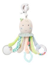 Votre bébé découvrira des tas de choses grâce à cette jolie pieuvre Fehn à suspendre sur la poussette ou le siège auto : hochet, miroir, anneau de dentition, etc.