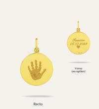Médaillon personnalisé avec les empreintes de main et pied ainsi que le prénom et la date de naissance en plaqué or
