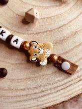 Attache tétine personnalisée avec le prénom; qui reste secret jusqu’à leur arrivée ;-)