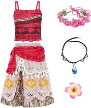 New front Déguisement Fille Moana Robe de Princesse Vaiana Enfants Robe de Costume 3-7 ans Collier Guirlande Cosplay Cadeau de Noël Halloween Carnaval Frange Bretelle : Amazon.com.be: Jouets